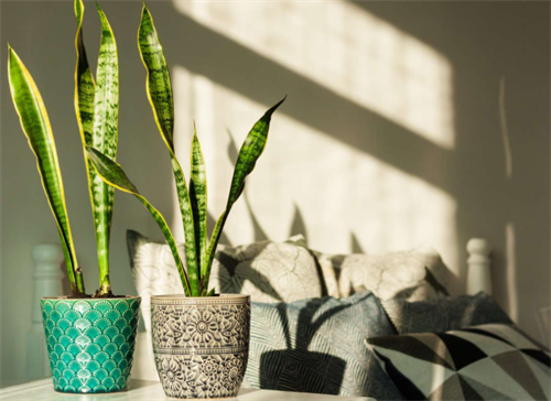 Snake plants feature upright leaves with striking variegation, combining beauty with functionality. Highly adaptable, they grow well in bright living rooms but also tolerate dim bathrooms. Extremely drought-resistant, they require watering only once every 2–3 weeks. Snake plants also absorb indoor toxins and release oxygen at night, making them an excellent choice for bedrooms to support restful sleep.