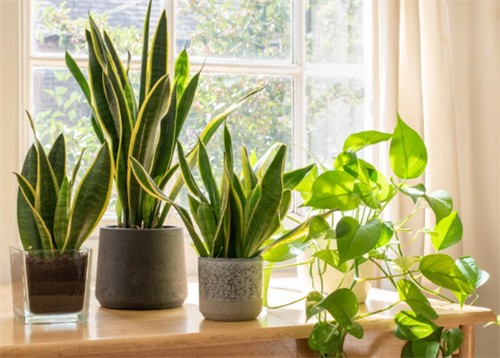 Snake Plant (Sansevieria trifasciata): Known as a “lazy plant,” it tolerates drought and low light, absorbs CO₂ at night, releases oxygen, and removes formaldehyde and benzene. Suitable for bedrooms. Water only when soil is completely dry, and tolerate winter temperatures down to 5°C.
